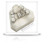 This MARA appliance reduces overbite by encouraging the lower jaw forward and the upper molars backward. This fixed appliance is used mostly for younger, growing children and is worn for about 12-15 months.